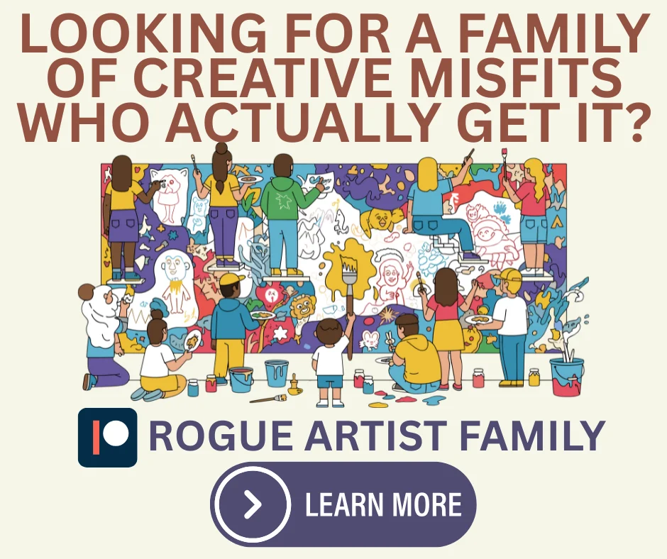 We have an amazing bunch of creative weirdos (Rogue Artist Community) on Patreon that support the content we share with creatives. Thank goodness, because it’s a lot of work to create all this stuff. If you would like to find out how you can support our content for creatives the perks you get, proceed!
