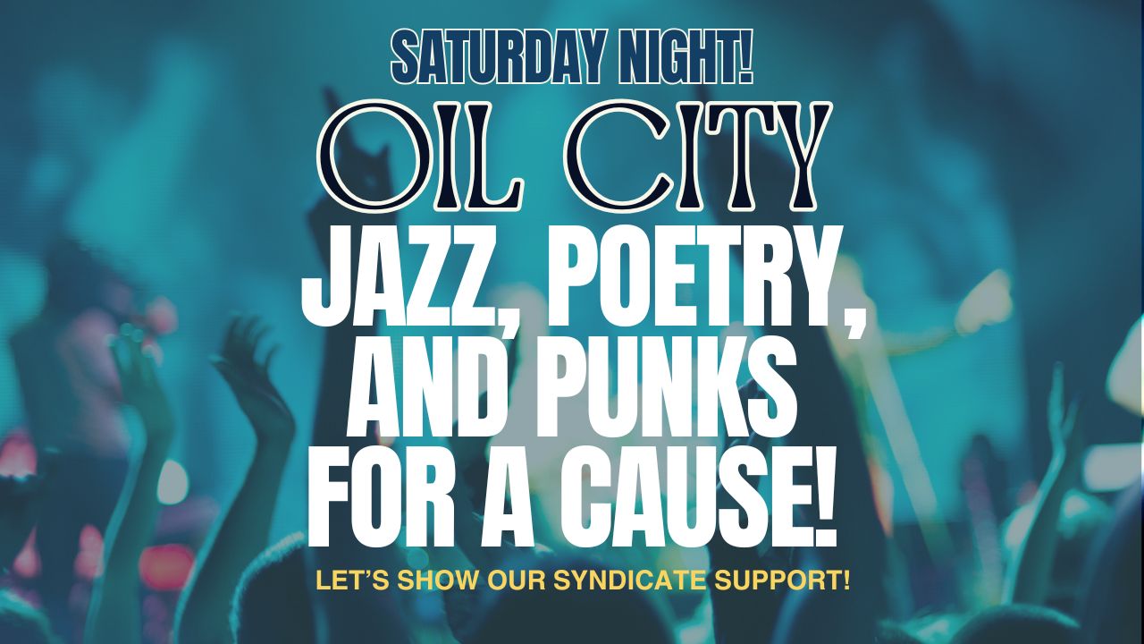 Whether you are sharing a poem at the library or donating art and food at each show, this Saturday is about how art and community fuel each other. Let’s get those donations to Kaleb by Friday and show Oil City what the Syndicate is made of! Klee and I are hoping to bounce from one event to the other, they are only a block away from each other!