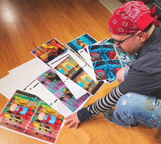 Absolutely not. But here we are anyway, knee-deep in canvases, surrounded by stacks of art, packaging materials, jewelry trays, tiny easels, tape guns, and a work table that looks like a rainbow threw up all over it.