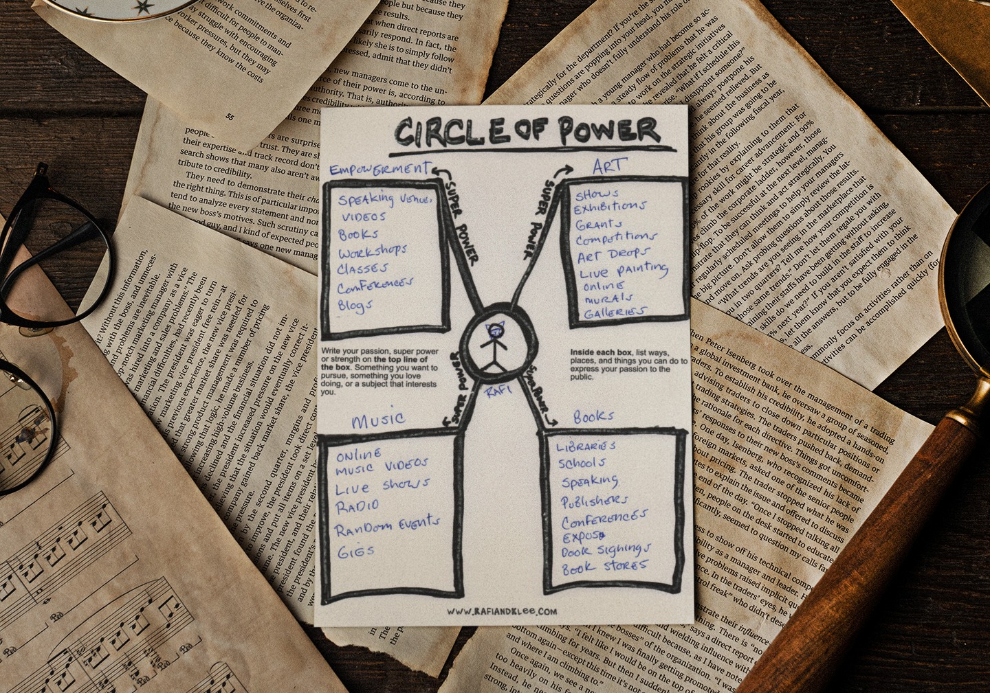 I created a thing! In tomorrow’s video, I’ll be discussing how to be prolific. While I was figuring out what I was going to say, I created this worksheet and it helped me find my superpower and how to put it out there. It is awesome! You can download it and view instructions here https://rafiandklee.com/document/circle-of-power-worksheet/